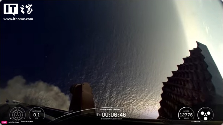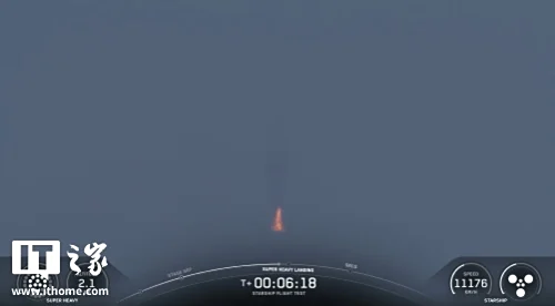 之后,星舰超重型助推器通过一次热分离与星舰上面级分离,成功在墨西哥湾实现软着陆和溅落。这款拥有 33 台发动机的火箭在发射过程中损失了一台发动机,但这似乎并未影响其飞行或着陆。