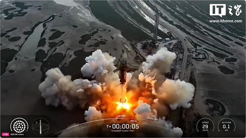 随着一声巨响,SpaceX 的星舰超重型助推器准时点燃了 33 台主发动机,向着太空飞升,开启 SpaceX 第十次飞行测试的升空之旅。